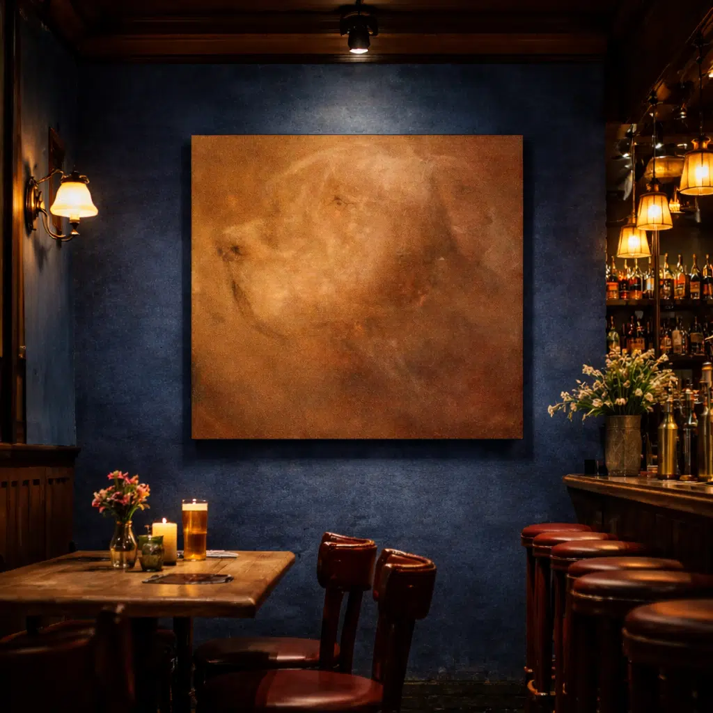 Door het warme, monochrome kleurenpalet krijgt het werk een zachte, intieme en bijna meditatieve sfeer. Het schilderij nodigt uit tot verstilling: je kijkt niet naar een dier dat luid aanwezig is, maar naar een stille, waardige verschijning die zich als een herinnering of emotie aan het doek hecht.